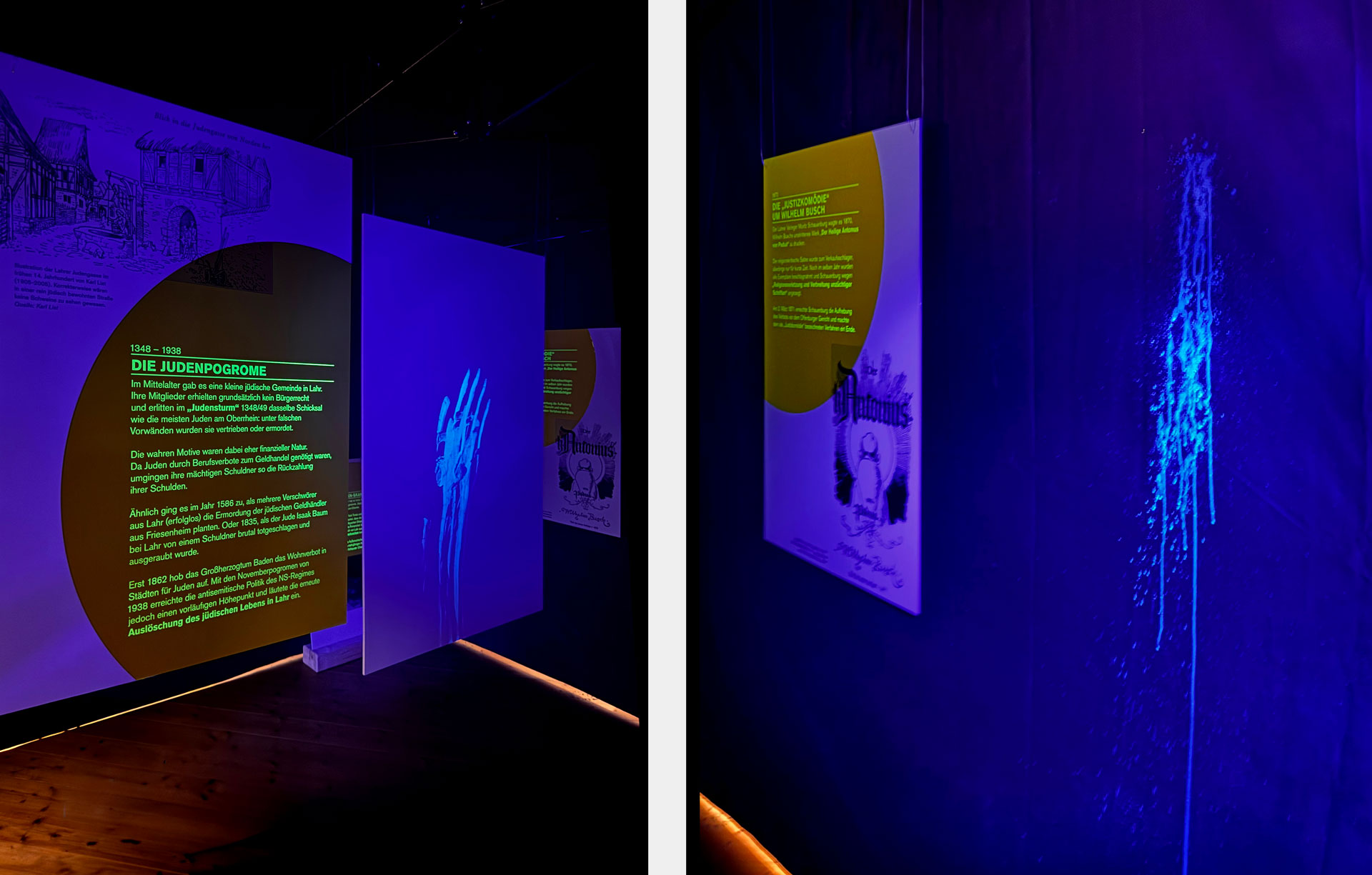 Das Ausstellungsdesign der Sonderausstellung im Stadtmuseum Lahr zeichnet Verbrechen der Stadtgeschichte vom Mittelalter bis heute nach und zeigt, wie sich das Verständnis von Recht und Unrecht verändert haben.