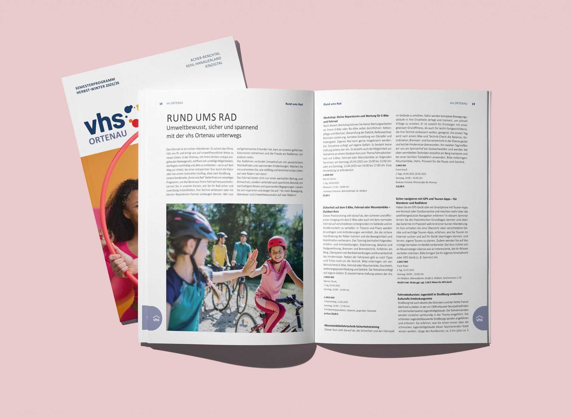 Seit dem Wintersemester 2024/25 begleiten wir die vhs Ortenau als Designagentur im Bereich strategische Kommunikation und Editorial Design. Eine Partnerschaft, über die wir uns sehr freuen – und die zeigt, wie wirkungsstark professionelles Design Bildungsangebote sichtbar machen kann.